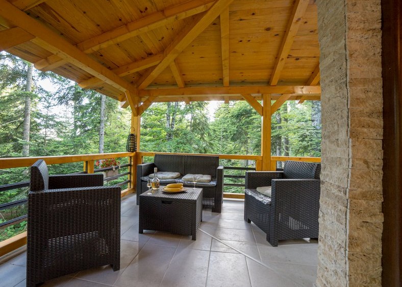 Сместувањето има голема тераса, а на приземјето се наоѓа голема дневна соба со кујна и трпезарија, додека на кат има две спални. Едната има брачен кревет, додека во другата има два единечни кревети.